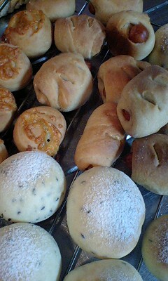 帰省してきていた近所の小学生のおねえちゃん達とこの8月の前半は夏祭りに行ったり花火をしたりボール遊びをしたり・・・。いっぱいいっぱい遊んでもらってとっても嬉しそうにしていた息子。週末には帰ってしまう・・・寂しいね~。息子(2歳9ヶ月)がおねえちゃんにパンもっていきたい!というのでこの日は朝から一緒にパンを焼くことに。全粒粉のソーセージパン&チーズパン、黒ごま入りの白パン。全部プチサイズに仕上げたのでたくさんできました。パパにいっぱいつまみ食いされてちゃったよ・・・。手が汚れなくてパクッと一口でいけるのが気に入ったとか?・・・・・・・・・・・・・・・・・・・・・・・・・・・息子と一緒に届けに行ったらプールに行った後だった。手渡せなくて残念。にぎやかな声が聞こえなくなるとなんだか夏も終わりだなーって寂しくなる。おねえちゃん達、いっぱい遊んでくれてありがとうね。また帰省してきたら遊んでね。
