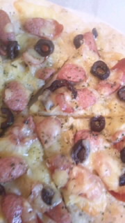 息子のリクエストで今日はピザを焼きました。道具をだしてイスを持ってきて材料もエッサホッサと準備して毎回粉まみれになって楽しそうです。食べられる粘土遊びって感じ・・・。今回はこちら。ピザ生地にはバジルを入れてとってもいい香り~。レシピを載せていますのでちょいと作ってみようかしら?っという方はどうぞーーー。★おうちでピザを焼こう♪発酵なしの簡単ピザ生地【楽天レシピ】http://recipe.rakuten.co.jp/recipe/1080000598/そして息子のはこれ。オリーブ抜き。