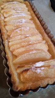 近くのスーパーでは冷凍食品が「半額」ってなる日が週に一度あるのでその時にまとめてストック買いしておきます。(半額って嬉しい~)冷凍食品はあまり買わないんだけど冷凍パイシートはキッシュやパイにいろいろアレンジできるのでよく使います。・・・・・・・・・・・・・・・・・・・・・・・・・今日のおやつはコレ。超簡単!お砂糖控えめのヘルシーおやつ。“夜ごはんを食べている間に焼いて食後のデザートに食べられる!”ってほど、楽チンにできあがる即席のアップルパイ。焼き上がりはこんな感じ。食べやすい大きさにカットして~。レシピはこちらにのせてます。↓冷凍パイシートで簡単りんごパイ【楽天レシピ】http://recipe.rakuten.co.jp/recipe/1080000704/