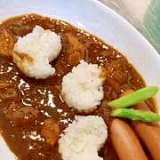 最近ちょっとお野菜“たべませーん”っと言い出している息子。じゃが芋の半分とにんじん丸ごと1本摩り下ろして混ぜてみました。ことりさんの型抜きで見た目もその気になるように・・・。ママ~~~っ!!!めっちゃおいしいわぁ~ ほんまにおいしいなぁ~。うししっ。作戦成功~!!!摩り下ろした方がお野菜の旨みがギュぎゅっとするような気がします。子供も大好きすりおろしカレー料理名:子供も大好きすりおろしカレー作者:saori2005■材料(5人分)鶏肉(むね) / 1枚たまねぎ / 2個じゃがいも / 5個にんじん / 1本しめじ / 1パック市販のカレールー(甘口) / 200g 1箱カレーパウダー / 小さじ1ローリエ / 小さめ1枚インスタントコーヒー / 小さじ1和風だし / 大さじ1チャツネ(市販のもの) / 大さじ1程赤ワイン / 500ml水 / 400~500mlウィンナー・かぼちゃ・オクラ / お好みで■レシピを考えた人のコメントあっさりとヘルシーに仕上げる為あえて鶏の胸肉を使っています。★おかわり続出!お野菜が苦手なお子様にも摩り下ろしてしまえば大好物に変身!大好評で~す♪詳細を楽天レシピで見る