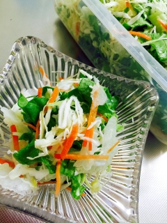 大家族に!キャベツの芯とセロリのリーフサラダ料理名:大家族に!キャベツの芯とセロリとリーフのサラダ作者:saori2005■材料(5~8人分)キャベツの芯付近 / 10cmほどセロリ(茎と葉どちらでも) / 1/2本グリーンリーフ / 5枚ほどにんじん / 5cmほどかいわれ大根 / 1パックお好みで、オニオンドレッシング / 大さじ3~4ほど■レシピを考えた人のコメント冷蔵庫にあるお野菜でちゃちゃっと大家族用のサラダを作ってます!今日のサラダはキャベツの固い芯、中途半端に残ったセロリなどをミックスに☆詳細を楽天レシピで見る━━━━━━━━━━━━━━━━━━…↓↓ ポイントが貯まるレシピ サイト ↓↓>>最短約 30 秒!▼無料▼会員登録<<━━━━━━━━━━━━━━━━━━…レシピブログに参加中♪