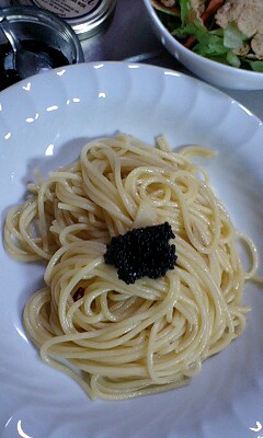 昨夜はぺペロンチーノにキャビアをトッピングして