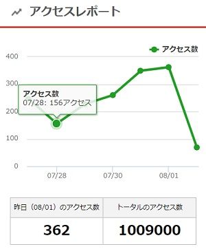 07月28日(火曜日)には、100台のあくせすだったのに、08月01日(土曜日)は、300あくせすを超えた。