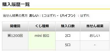 第1200回のBIG.で、当せんに1こ、はずれ。