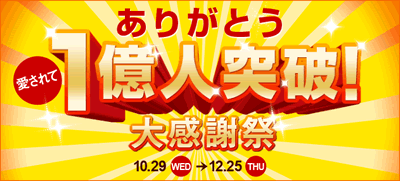 こんにちは、マーケティング部のなんじょうです。気づけば12月。1年が経つのは早いですね・・・。2008年。実は、楽天トラベルにとって大きな節目となる年でした。と言うのも・・・なんと!ご利用者累計が1億人を突破したんです。ところで、「1億」という数字、ピンときますか?例えば「1億」に関連するホットな話題では・・・・「プロゴルファーの石川遼選手が史上最年少でのツアー獲得賞金1億円を突破」というニュースがありましたね。・「深刻なインフレ続くジンバブエ、新1億ジンバブエ・ドル札を発表」なんてのも。いったい日本円ではおいくら?・年末ジャンボは・・・あらら、こちらは総額「3億円」でしたね。そんなこんなで、「億」って大きな単位なわけです。ということで、この機会に先日お客さまにアンケートをお願いしてみたんです。お題は、~ご利用者累計1億人を突破した楽天トラベルにひとことお願いします~それで集まったアンケート回答がなんと「5,850件」!読み始めると・・・な、な、泣ける!自席で鼻をすすりすすり、大変でした。↓ほんの一部をご紹介↓■すごい!私も1億人に入っているのは光栄です!特別企画を楽しみしています(東京都 30代女性)■⇒そういっていただけるお客さまが居らっしゃることが楽天トラベルにとって光栄な事実です!楽しみにされちゃうと弱い・・・特別企画・・・はい、立ち上げちゃいました!!!大好評開催中 【ありがとう 愛されて 1億人突破! 大感謝祭】しかも、楽天トラベルの魅力を存分に感じていただける特別企画を「10本」もご用意しています!クルマや豪華ヨーロッパ旅行が当たる「総額500万円以上の大盤振る舞いプレゼント」も応募受付中エントリーだけで「ありがとうポイント」のプレゼントもございます!まだの方は今すぐ応募してください♪■1億人突破おめでとうございます。これで安心する事無く、今後も良いホテルを安く紹介できるよう頑張って下さい(富山県 40代男性)■⇒はい、もちろんです!よりよいプランをご予約いただける「最低価格保証つき楽天限定プラン特集」を大感謝祭内で展開しています。万が一、同一のプランが他のサイトでより安く予約できる場合には、「差額相当分を返還」!あの超一流ホテルが「2名1室 11,500円~/人」有名温泉宿の露天風呂付客室も「4名1室 16,800円~/人」部屋数に限りあり!今すぐチェックください■1億人と言えば、日本の人口にあと数千万人という数字であり、びっくりしています。それだけ愛されているサイトと言えるでしょう(千葉県 40代男性)■⇒ありがとうございます!おかげさまで着々と日本の人口に近づいていますが、早速嬉しいニュースです。なんと!この週末に「1億2,000万人」も突破しました日本の人口まであと少し!今後もよりよいサービスで、より多くの皆様に喜んでいただけるようがんばってまいりますので、末永くよろしくお願いいたします