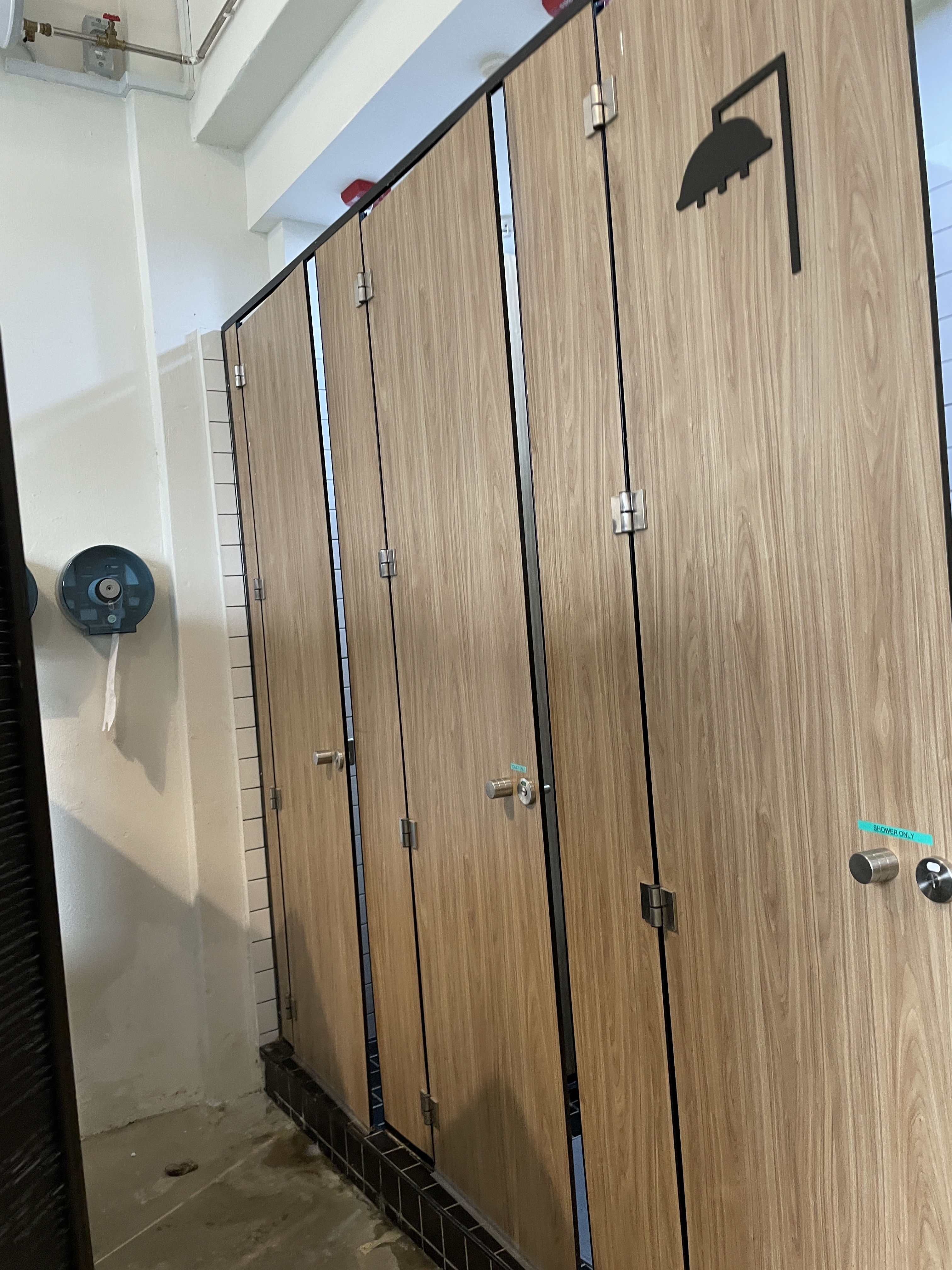 と、ここでトイレに行きたくなったので個室に入ることに。(残念ながら、シャワー室もトイレも水びたしでスマホは持ち込みませんでしたので、写真なし)