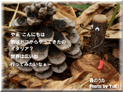 森の住人の横にある大きな松ぼっくりみたいなやつはイタリアに旅行に行った人のお土産です握りこぶし2個分ぐらいある大きなものなんですよ