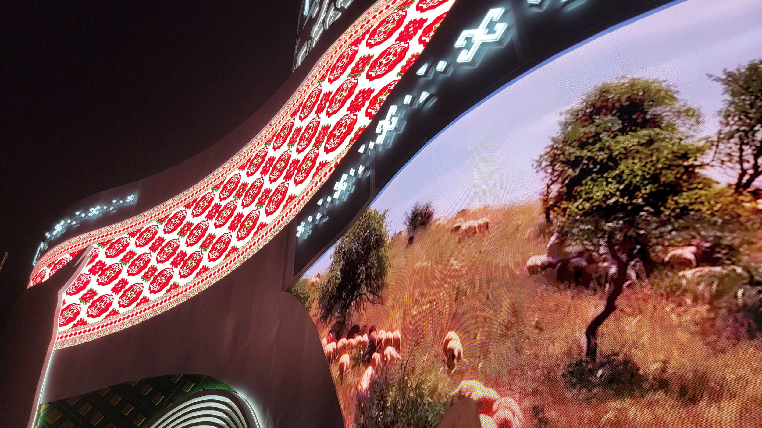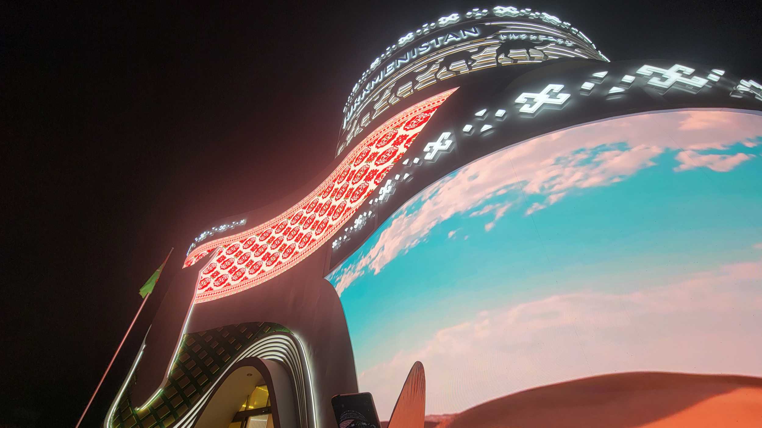 ド派手な外観です。巨大なビジョンがついており、トルクメニスタンの映像が放映。