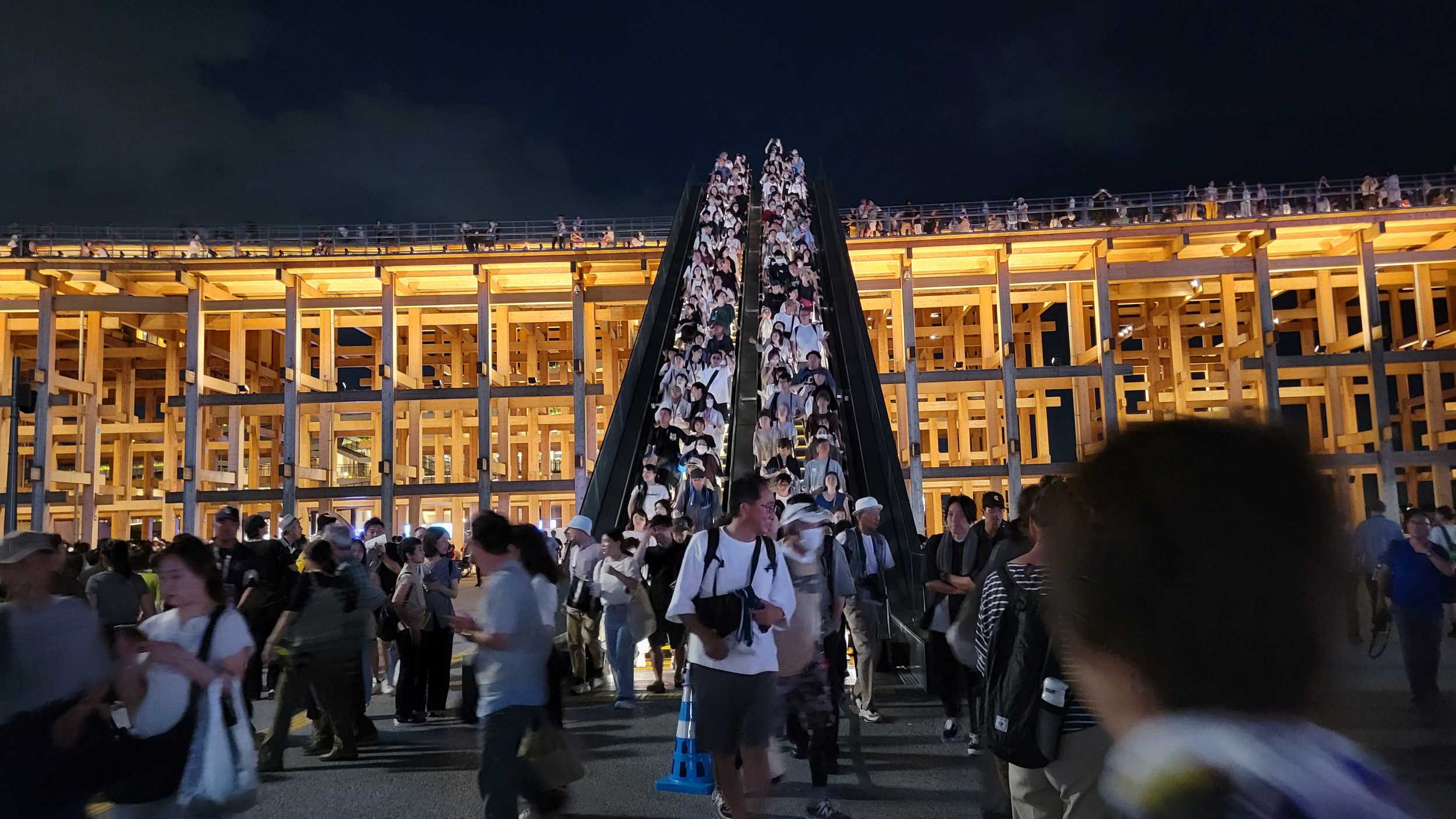 ドローンショーが終わり、大屋根リングから降りる人の列が凄かった