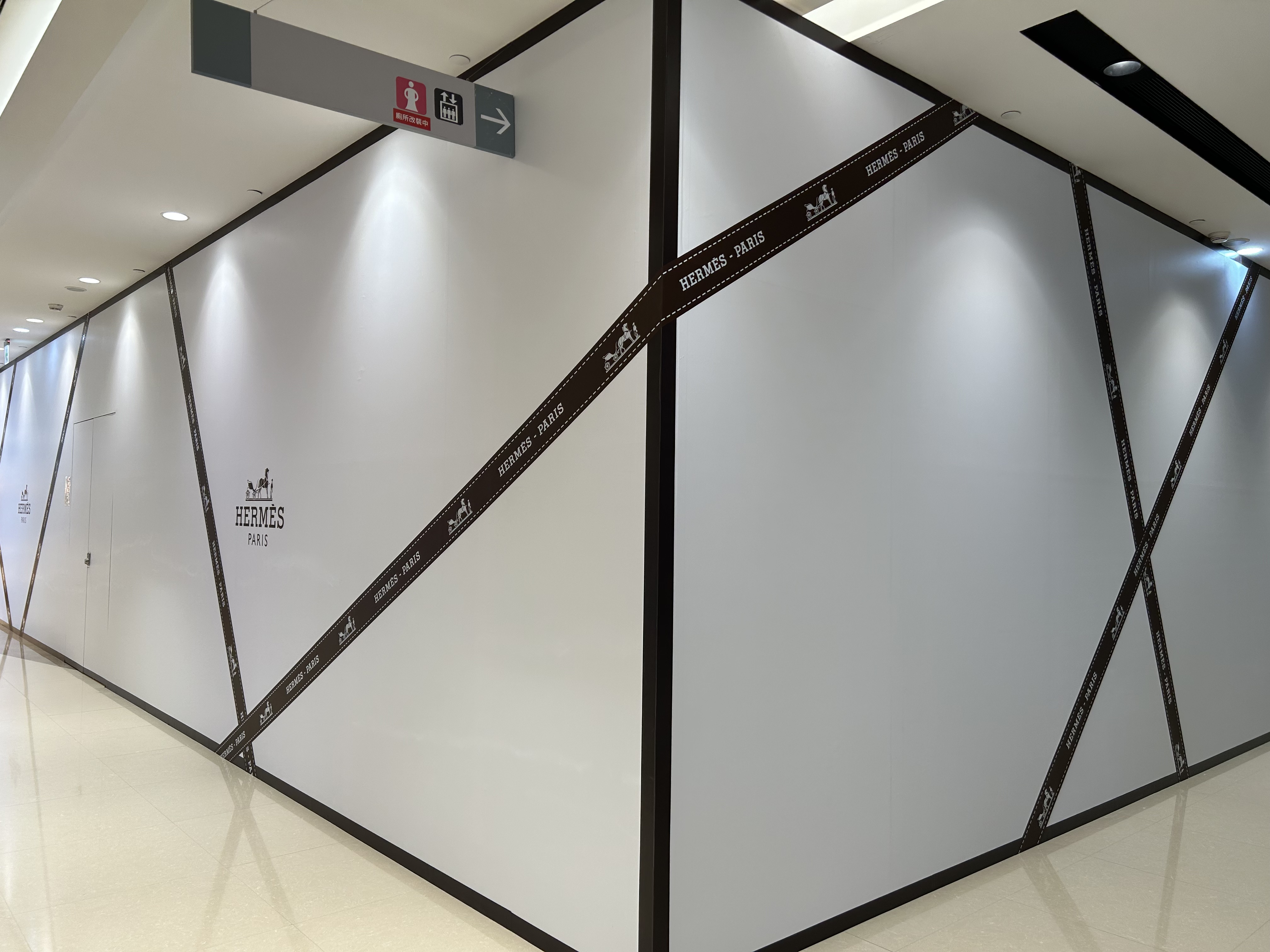 ​​​​遠東SOGO百貨店の大改装でした。シャネル、エルメス、ルイヴィトンはこれまでも2フロアの大型ショップでしたが、それを3フロアに増床する改装工事中、それぞれ売り場を仮設パネルで囲って3フロアはほぼ開店休業のような状態でした。