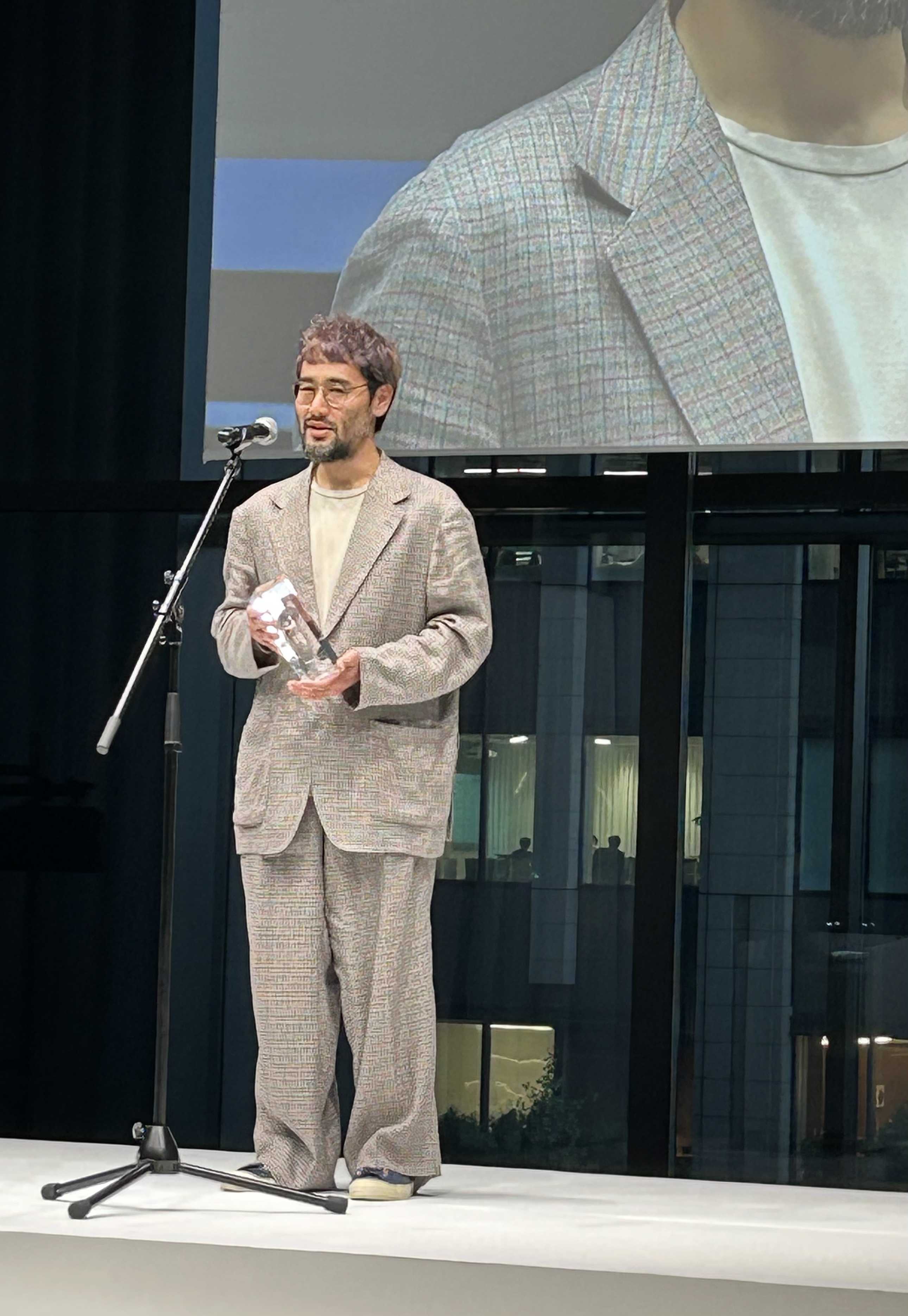 長年ファッション業界に貢献してきた方を選ぶ鯨岡阿美子賞(初期の毎日ファッション大賞選考委員長だった故人の名を残すために設立された業界功労賞)は日本の多くの繊維産地を走り回り、産地の技術とブランド側のクリエーションを繋いできた宮浦晋哉さんに贈られました。年々廃業件数が増える地方の繊維産地をなんとか元気にしようと奔走する姿を評価しての表彰です。