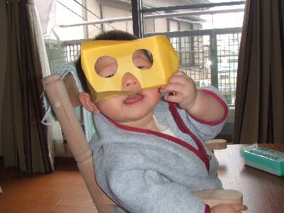陽菜も7ヶ月を過ぎ、もうすぐで8ヶ月になります。 まだまだ赤ん坊かと思いきやもう立派な子供です。なんだか知恵もついてきているようです。 最近は掴まり立ちが出来るようになって、立ちたがる陽菜です。夕方、妻が家事をやるために台所にいて、陽菜が部屋に一人になる瞬間。ベットの柵を使って掴まり立ちをします。本当は自分でもまたしゃがめるのに「あー!!」と怖いよとでも訴えるように妻を呼びつけます。妻が顔を出すとニコニコと笑って「エヘエヘ」と愛嬌を振りまきながらしゃがみます。「ただ呼んでみただけ」ってな感じです。 また妻が台所に行くと、同じことが始まります。 そんなことを繰り返した今日。妻は陽菜に「晩御飯を作るから今の時間は忙しいから少し待っていてね」と声を掛けるとまた「へへへ」と笑顔。 この歳にしてすでに笑ってごまかすテクニックを習得したようです。(笑) 自分のお気に入りのおもちゃは両手に抱えて絶対に触らせないあたりなんかは自己主張の強い子なのかと思わせられます。 写真は市からもらった幼児の視野体験めがね(ただ紙で作られた簡単なものですが・・・)を自分でかけて喜ぶ陽菜です。