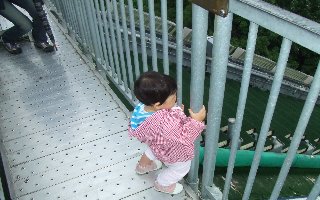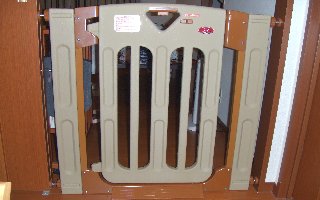 ハイハイも伝い歩きもし始めた陽菜はもう自由に動き回れるのが楽しくてしょうがない様子です。以前からですが、陽菜のお気に入りは「台所」陽菜にとって興味をひくものが盛りだくさんです。棚においてある果物を取ってみたり、缶でできたゴミ箱を叩いて楽しんだり、電話の受話器も陽菜にとっては楽しいおもちゃです。そんなこんなで毎日「お仕事」に勤しむ陽菜にはかわいそうですが、台所の入り口にゲートが登場しました。もう設置して半月ほどですが、最初こそ突然通行止めにされ、柵の前で泣きわめいていた陽菜ですが、最近は柵を壊してしまうのではないかと思うほどの力でバタバタ、ドカドカと柵と格闘しています。昔、テレビで食事の味噌汁をすこしづつ鉄製の柵の根元にかけ続けて、数年かけて柵を腐食させて脱獄したなんて話もありましたが、陽菜もいづれ柵を壊して突破してきそうな勢いです。