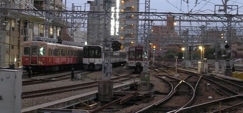 説明会にきていただいた新入生、在学生の皆様まことにありがとうございました。私、鉄楼は説明会ではあがりっぱなしの滑りっぱなしでしたが、これだけは保障します。参加して損はないと今日は平日やけど、大学は休みやから行ってまいりました 東急田園都市線ラッシュに活躍する、東武線に乗り入れない車両たち 通称サークルKもちろん車内がコンビニ、というわけではなく、いたってあだ名は単純明快○K印のステッカーが貼られて区別されているからっちゅーことが由来やろねたとえば、A.高齢車やから、そのうち新車にCHANGE予定B. そもそもコイツしかつんでない試作的メカの車両がおってほかと若干違うC. マイノリティーやらなんやら、理由はさまざまなんやけど、車両もさまざま個性派ぞろいそんな非直通編成も8500系に廃車があり、今元気で残っているのは8500系の一部・8606F 行先表示が幕 スカートがない 原型編成のラスト1本・8642F中間車が VVVFの改造、あるいははじめからVVVF しめて3種類の制御機器を積んでるっちゅう、見た目では何のこっちゃ分からん編成8590系・8694F・8695Fもともとみなとみらい線直通用に、貫通扉をつけて登場した先頭車&非貫通やった8090系中間車で構成され、東横線急行でブイブイ言わせてた編成軽量ステンレス車体のさきがけ 5本中2本が田園都市線へお引越し2000系・2001~2003F1992年に増発用に登場ベースは東急9000系で、人に優しい車両がコンセプト、初めて車イススペースをつけたりなどなどいかんせん、マイノリティーといった感じで、まあ平日は授業あるさかいよー行かんチャンスとばかりに結果全部見れました2000は2本撮影失敗1本捉えるせやけどほかのはまあまあやから私の目の前を走っていったサークルKは長津田へと帰っていきました。※追記東横線で、田園都市線用の5000系5122Fが絶賛活躍中東横線用5050系との見分けるポイントは 車内が紫系統のカラー