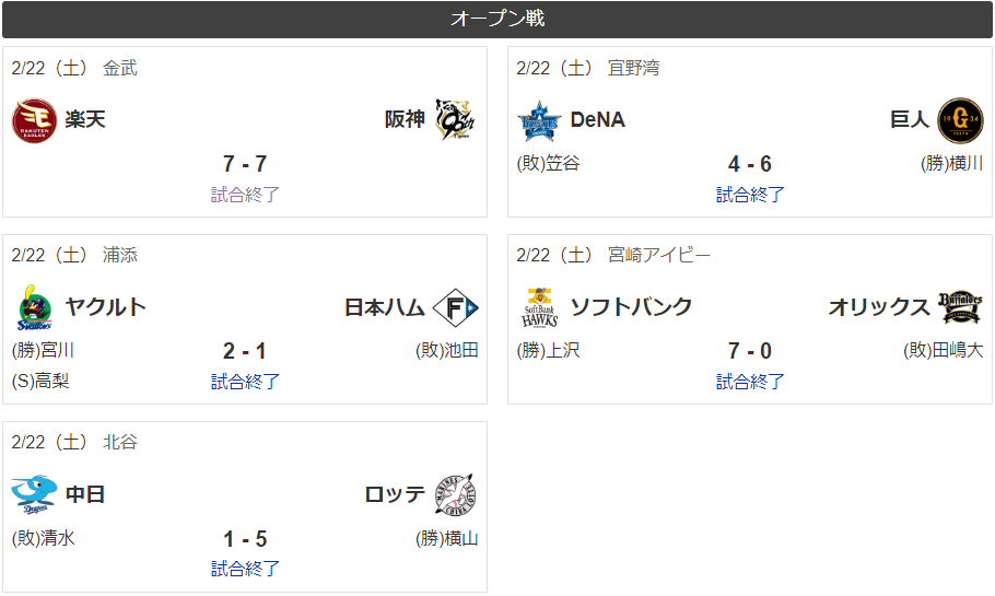 一度更新したんですが、ちゃんと更新されないので、再度更新することになってます。申し訳ありません、更新が遅くなりました。メジャーリーグでは、キャンプインがそろそろ始まるところではありますが、日本ではオープン戦が始まる前の練習試合が行われたところであります。11日には中日vsDeNA,楽天vs日本ハムの2試合が行われ、中日vsDeNAは4-0でDeNAが勝ちました。中日は8安打も打ちながら無得点と今年も得点には悩ませるのかな?考える試合でしたよ。楽天vs日本ハムは6-4で日本ハムが勝ちましたね。13日の練習試合は、雨で2試合が中止。15日は楽天vs阪神、DeNAvs中日の2試合が行われました。楽天vs阪神は6-0で阪神が勝ちましたから阪神を応援しているファンは、木浪選手と前川選手のホームランには、ええもんを見たと感慨にふけっているところだと思います。DeNAvs中日は、8-6で中日が勝ち、今年は得点が少ないのは少しは改善されるのかぁ?と思う試合でしたよ。さぁ、本日は阪神vs広島、日本ハムvs楽天の2試合が練習試合です。これから練習試合もありますが、22日からはオープン戦が始まります。1軍に入るかどうかはここでのアピールが重要になります。このオープン戦では、1軍に入れるかどうか、1軍のベンチ入りどうかが重要になっていきます。これを勝ち取るかそうじゃない選手はぜんぜん違うものになってます。レギュラーは間違いないと思っていても。それを決めるのは首脳陣です。自分と評価が違っていても首脳陣が決めるのは文句が言いようがありません。このところが厳しいところですよねぇ。さぁ、これからどうなっていくんでしょうか?。あっそれからプロ野球栄冠ナインクロスロード、今、画像を新たにキャプションできるサプリを探しています。それが決まれば、先に進めることが出来るので、ゲーム同様、ここに載せる画像も決まってくると思うですよねぇ。大丈夫かな?では,