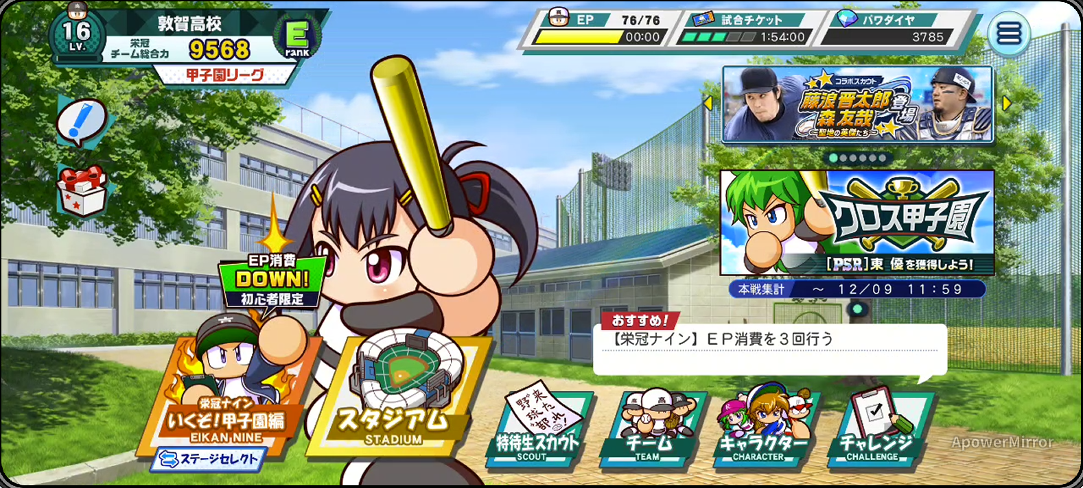先週から昨日まで嬉しい出来事が色々ありましたから、今回はそれをピックアップして書いていきますね。まずは、先週の22日に終わった大相撲秋場所(9月場所)は関脇の大の里が千秋楽に敗れて13勝2敗でしたが、優勝して場所後に大関昇進やりましたね。現時点ではまだ大銀杏(おおいちょう)が結えない大関となりました。大の里は幕下10枚目格、付け出しの初土俵からわずか所要9場所での記録は最速になりますなぁ。昇進前の3場所のうち2場所で優勝したのは90年ぶりになるそうです。もう横綱の照ノ富士はそう長くないでしょう。早く横綱まで駆け上がってほしいもんですねぇ。そしてメジャーリーグの大谷選手、自分が希望していた本塁打50本、盗塁50個を見事に達成してくれました。一昨日にはドジャーズが地区優勝を決めて3年連続です。というよりも2013年から2020年まで8年連続の地区優勝ですから、2021年の2位以外今年までの12年間で11回の優勝を果たしている強豪チームです。大谷選手はここに移籍できて、念願のメジャーリーグでのシャンパンファイトも経験することが出来て感無量でしょうなぁ。そして昨日には57個目の盗塁を決めて、イチロー氏の盗塁記録56個を抜いて日本人選手のトップになりました。昨日の試合では54号本塁打を含む5打数4安打4打点。打率が3割9厘まで上げて、3冠王が現実味を帯びてきましたねぇ。ただ残り2試合、監督は出場させることを明言しているし、ホームランが出やすい球場なので、最後まで突っ走ってもらいたいもんですなぁ。三冠王取れたら最高です。実況パワフルプロ野球栄冠ナインクロスロードは、評価を上げるのに苦労してます。評価を上げるには甲子園出場の常連校になるのが近道だと思っているんですが、ここ最近では春と夏、どちらも甲子園に出れてはいません。そこで上記の画像は、PSRの選手を獲得出来たという証明を見てもらうために画像をキャプションです。現在は5年目か6年目の12月で、次の年に甲子園に出場するために練習しています。では