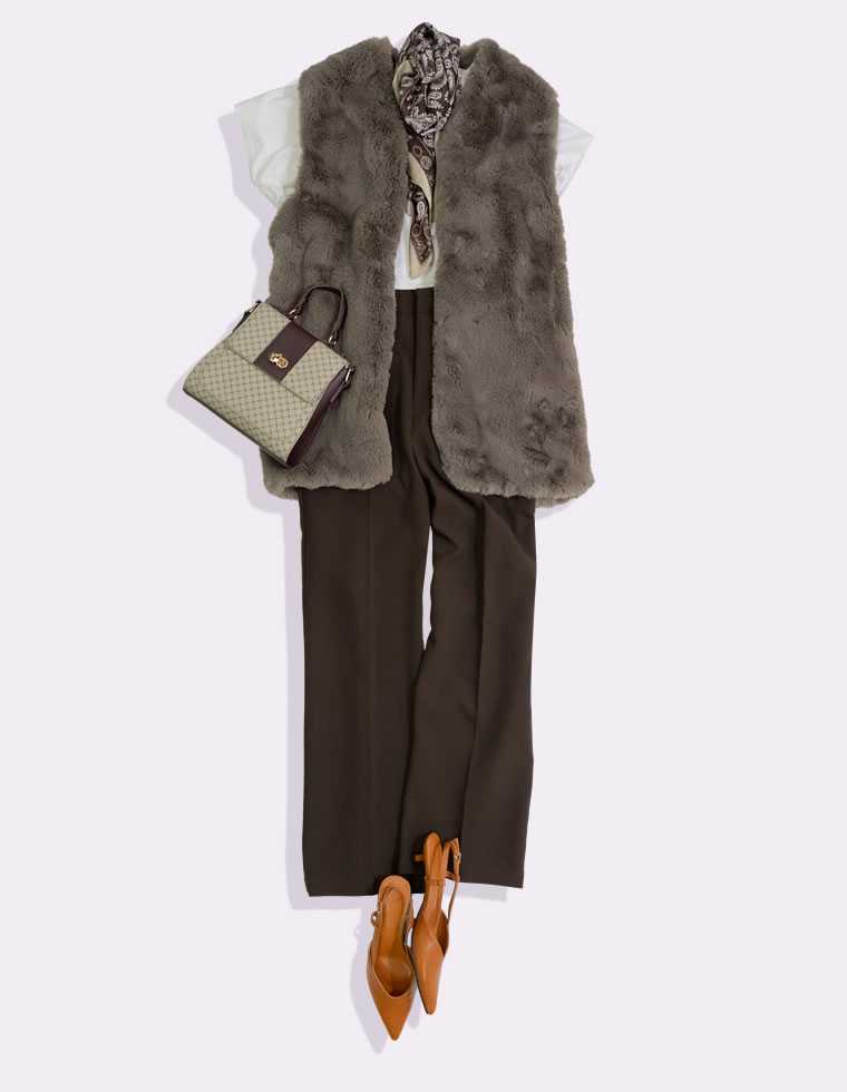 秋これさえあればお洒落に決まる!モカグレー×こっくりブラウンで秋を先駆け秋を取り入れるのにぴったりなのが、少しくすみのあるモカグレーのファーベストに 濃いめのダークブラウンのカラースラックスを合わせた、秋カラースタイル。 一見シンプルなスタイリングも、ファーベストを羽織るだけでぐんとお洒落見え効果◎ スカーフやバッグの小物選びも、カラーを意識してプラスワン。 Tシャツはベーシックな白で爽やかな抜け感を持たせた、初秋に着たいアーバンスタイルに。【着用コーデアイテム】≪8月10日発売≫M/Lサイズ [2022A/W COLLECTION]フェイクファーミドルベスト レディース 秋 冬 / ジャケット アウター ノーカラージャケット ファーベスト ジレ ジャケット ノースリーブ チュニック [先行予約受注]【TIME SALE!15%OFFクーポンご利用で1,700円】M/Lサイズ シルケットコットンフレンチスリーブチュニック レディース 春 夏 / トップス Tシャツ カットソー チュニック シルケットコットン フレンチスリーブ 綿 無地 綿≪8月12日20:00~一部カラーのみ緊急再販!≫SC-Lサイズ [神山まりあさん着用][低身長サイズ有]カットツイルセンタープレスカラースラックス レディース 春 夏 / パンツ スラックス タックパンツ オフィスカジュアル 低身長 カラーパンツ[送料無料][一部先行予約受注]≪8月5日待望の再販≫フリーサイズ [2021A/W COLLECTION]2WAYゴールドバックルアソートフラップバッグ レディース 春 夏 / バッグ ショルダーバッグ ハンドバッグ 2WAY フェイクレザーレイヤードが映える!ファーベスト×ストライプシャツシックかつモードな雰囲気のブラックのファーベストと、 マルチストライプシャツを合わせたレイヤードが映えるスタイリングに。 細く細かめなストライプデザインが縦ラインを強調し、ファーコーデも着膨れせずすっきりとした印象に。 スカートは、ブラックながらマーメイドシルエットで女性らしさも忘れずに取り入れて。 ファーベストを脱いだら、目を惹くバックフレアシャツで隠れた所にもさり気ないこだわりを。【着用コーデアイテム】≪8月10日発売≫M/Lサイズ [2022A/W COLLECTION]フェイクファーミドルベスト レディース 秋 冬 / ジャケット アウター ノーカラージャケット ファーベスト ジレ ジャケット ノースリーブ チュニック [先行予約受注]≪8月7日発売≫M/Lサイズ [2022A/W COLLECTION]マルチストライプバックフレアシャツ レディース 秋 冬 / トップス シャツ/ブラウス シャツ ブラウス トップス 長袖 チュニック ストライプ 綿 [先行予約受注]≪8月9日一部カラーのみ再販≫SC-Lサイズ [低身長/高身長サイズ有]カットツイルウエストダーツマーメイドスカート レディース 春 夏 / スカート マーメイドスカート ロングスカート ハイウエスト 低身長 [一部先行予約受注]