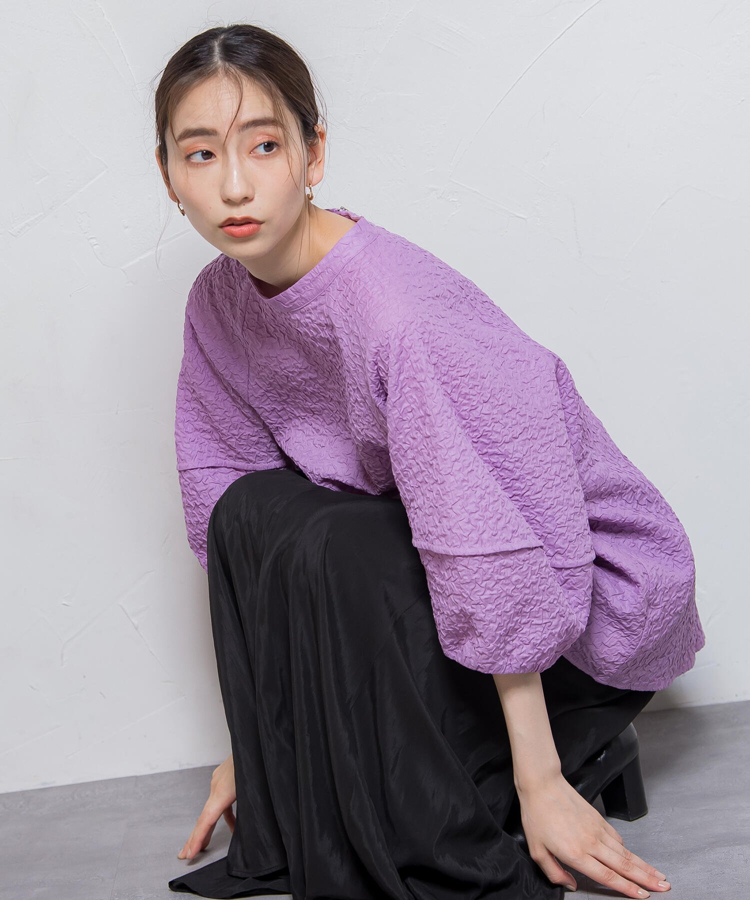 Droite lautreamont ポコポコボンディングブラウス《手洗い可能》 ドロワット・ロートレアモン シャツ/ブラウス 長袖シャツ パープル ホワイト ブラック【送料無料】
