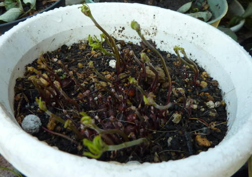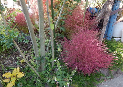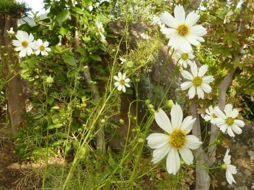 こんにちは 台風接近中です 今日は祭日だけどJI-JOが学校 4時にはJRが完全ストップと言ってたので 帰れるか心配だったけど 家を出る直前に警報が出て休みに・・! この前の逆だった。。。 現在 暴風域に入ったミタイで 風雨が強くなってます 夜更けまでは影響がでそう。。。 被害は最小限でありますように。。。 台風前の画像から コボレのコスモス適度に咲いて適度に倒れてましたまた倒れるでしょう。。。 玄関前の花壇では ブライダルピンクが咲いてましたあまり大きくならないのは隣のコキアがデッカくて 真っ赤になり掛かってるからかも・・? 庭の片隅で デルフィのコボレが出始めてますオダマキもアチコチ移植してます バロンの下にコボレを移植したルコウソウ ちょっとピンクっぽく咲きましたグリーンカーテンでは伸びなかったけど この場所では既に バロンを捕らえて押さえ込み。。。 自分で蒔いた種は自分で・・! 後から蒔いた鉢の方も発芽まだ蒔いた全種類は出てないけど失敗かも・・?失敗と言えば 一カ所に蒔きすぎましたバーバスやジギの種は小さいので2粒くらいのつもりが多かった。。。。現在は被害が少なそうな場所に置いてますが雨がひどいと芽も抜けでるかも。。。。 復活してきた ブラックのダリアまた台風で倒れるでしょうね ブラックと言えば 黒真珠チラホラですが咲いてます 台風の影響でまつり見物は控えめになってます土日は地元だけ 今日は中止になったみたいです 明日・明後日が本命ですが台風は過ぎ去った後なので足元だけ考えてがいいみたい。。。まつり気分とは言いながら仕事の目処を立てたいので半分は仕事をやってました半分なので酔いながらの時も。。。 まあ今日は終わって雨と風の音を聞いて震えながら酔っぱらっていけ~♪ ふ~~~