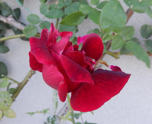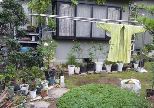 こんばんは 朝は冷えてたのだろうけど 昼間は暑かったミタイですね 暑くても寒くても エアコンの部屋ならわかりにくいです 神戸が早く終わって帰ってきたので 家に帰る前にホムセンへ行きました 週末の作業のための買い出しですが 天気予報が変わってて 作業が出来ないかも・・? 日曜日 外に出て庭を眺める ありゃ! バスローブが干してありました疲れ果てたボクサーみたいですね結婚前から使ってた物ですでに24年物です・・!所々破れてますが同じ色の布を当てて補正してますが同じ色がなかなか無いのです一応ベネトンですから・・!お~!ライ・ラ・ラライ・ライ~♪ ライとは良いながら真実です。。。 その後気になってたので作業を開始どうも水はけが悪いのでコガネJrかミミズか?ってことで水はけの悪い鉢のバラの土替えを行いました ブルーマジェンタコガネJrは居ませんでしたが根がビッシビシでしたそれが原因であったような。。。。 いつも後半でスタミナ切れスルので今回は堆肥を一つ追加して 赤玉の小粒も多めにしてみましたその後 バロンの土替え同じように根がビッシビシだったので鉢増ししましたバロンは返り咲きするので大きいのがいいでしょう・・! 庭で真っ赤になっていたコキア一応 カットして干しておきましたどうするかは未定ですが 来年この辺りにコキアがいっぱいになるでしょう。。。でまだ時間が余ってたので同じように水はけの悪い挿し木の鉢の土替えをやりました 十数鉢同時に西側に置いている挿し木の大きめの鉢も 土替え完了一番左はダービーの挿し木ですが癌腫でびっしりでした根っ子の半分が癌腫に覆われてたので半分をノコギリで切り取りました付いていた蕾は垂れてしまたのでカットですこのまま復活出来ないかもです。。。 その上では ツルアイスバーグがチョロチョロ トレゾアは見事ゴールドに咲きましたすぐ上では ローブが咲いてますがやはりドルシュキの影響で真っ白になっております まつりの写真の整理が終わりました現在アップ中です終わればHPの編集をして今年のまつり関係は終わりかな・・? 連休で土替えを進めたかったけど無理だろうなぁ。。。。 ふ~~~