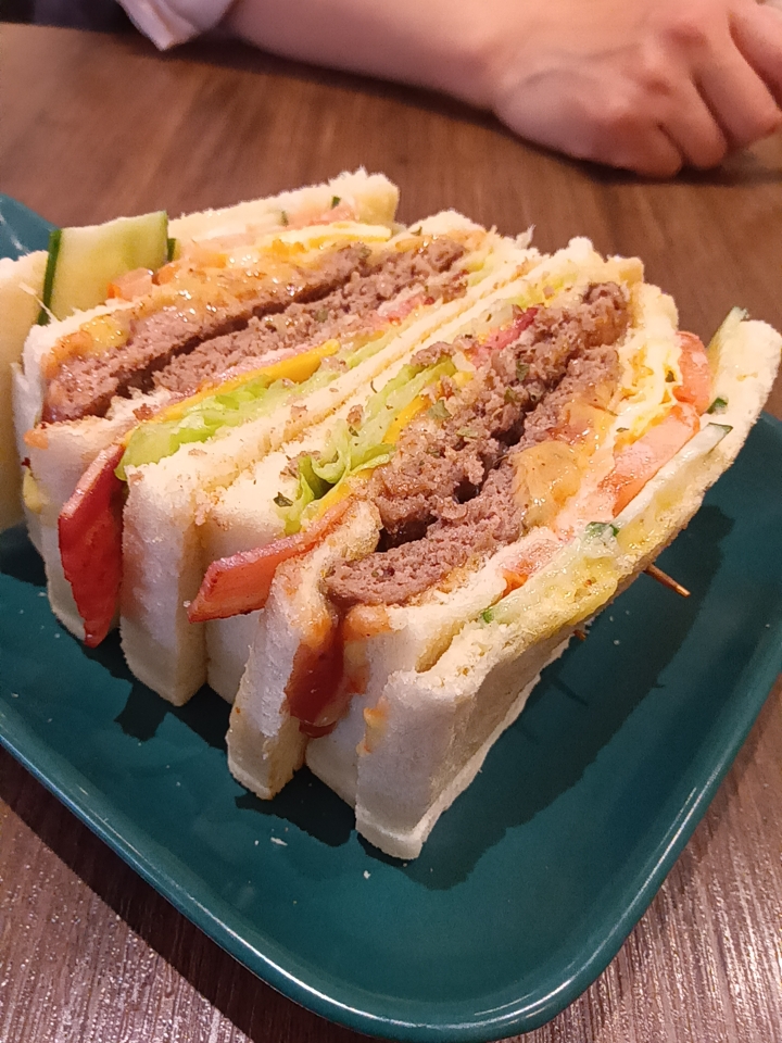 始業式を昼前に終わって通学バスで帰ってきました。お昼だいぶ 過ぎていたので 腹ごしらえ です。再びの土木公社炭烤土司です。チキン たまごバーガーです。予想通りの味で安心できます。