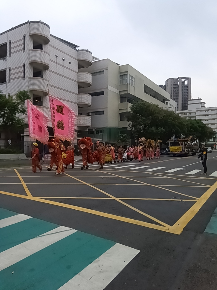 夕方すごい爆竹とお囃子の音が聞こえたので降りてみると、地方車みたいな行列。近くの台中廣天宮のお祭りだと分かりました。富の神を祀る礼拝所だそうです。竣工は1976年(民国75年)とわりと新しい建物です。ゴールのお宮内ではしばらく爆竹が鳴り響いていました。
