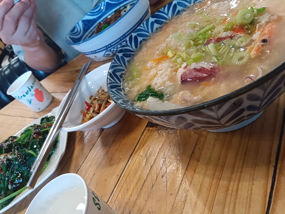 平日のお昼,少しだけ贅沢して初めてのお店にチャレンジしてみました。怡園海鮮面食館です。これまで粥をあまり食べていなかったと思い,海鮮粥をオーダー。これが大当たり。来台して一番おススメできるところだと思いました。海鮮のだしが利いていて,アサリ,エビ,イカがごろっと入っています。食べ応え十分で別のメニューも試したくなりました。