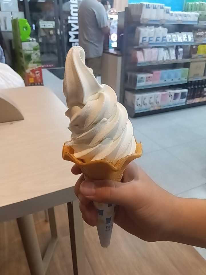 台湾に来てからセブンイレブンやファミリーマートなどコンビニにはとてもお世話になっています。いざという時のお弁当が結構割安で種類も豊富です。イートインスペースも広いところが多くあります。悠遊カードのチャージやネット通販の荷物の受け取り場所に指定することもあります。今回はクーポンでソフトクリームがお得に食べられるということで、子どもおやつに。またマンゴーアイスは2本買うとお得なセールだったので1本いただきました。久しぶりのアイスでしたが 美味しかったです。