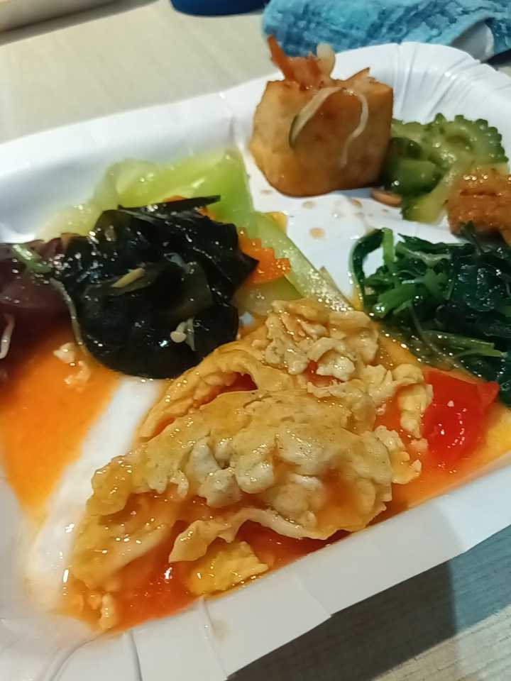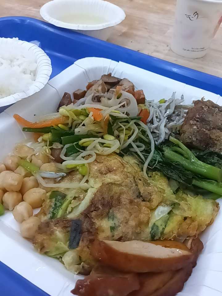 大買家に行くときに初めて子どもを連れて自助餐に行きました。ここでは量り売りの明朗会計、しかもデザート類もあるので子どもを連れても安心できます。今回は3人分で243元でした。しかも、無料の冷たい綠豆湯がいくらでも飲めて助かりました。奥の掘りごたつ式のテーブルを確保していましたが、会計時にやさしいお爺さんが4人がけのテーブルを譲ってくれました。さらに、隣の優しいおばあさんから、スープがあることを教えてくれたり、持っていたお菓子をくれたり、いろいろ気にかけてくれました。隣人に対する思いやりが感じられた瞬間でした。