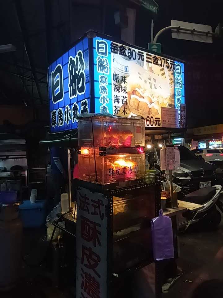 近所にあるのに寄る機会がなかった小ぶりな夜市。わざわざ遠くの夜市まで出かけなくてもお気に入りの露店はありました。食後にたこ焼きを1パック持ち帰り。1個が2個分あるボリュームで小麦粉多めもう一つは卵カステラ。偶然にもタコの形をしていました。臭豆腐のお店が目立ってはいますが,ほかにも必要にして十分なものがそろう夜市でした。