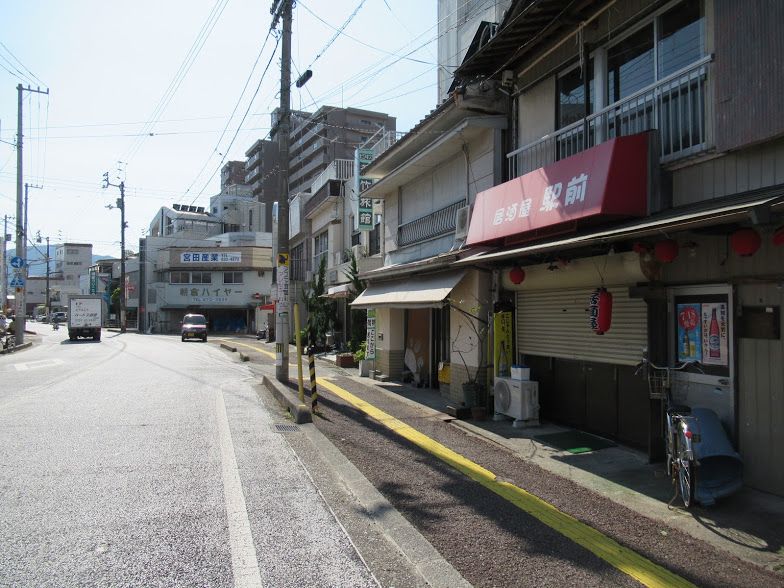JR旭駅前から駅前通りをみると,朝倉ハイヤーなどは当時のまま。