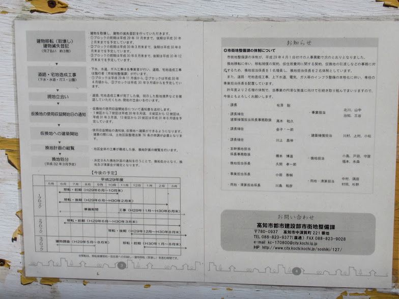空地の掲示板に今後の事業計画スケジュールが掲載されていました。