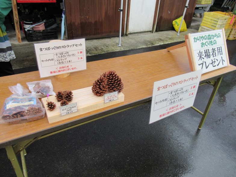 来場者用プレゼントで大小の松ぼっくりをいただきました。