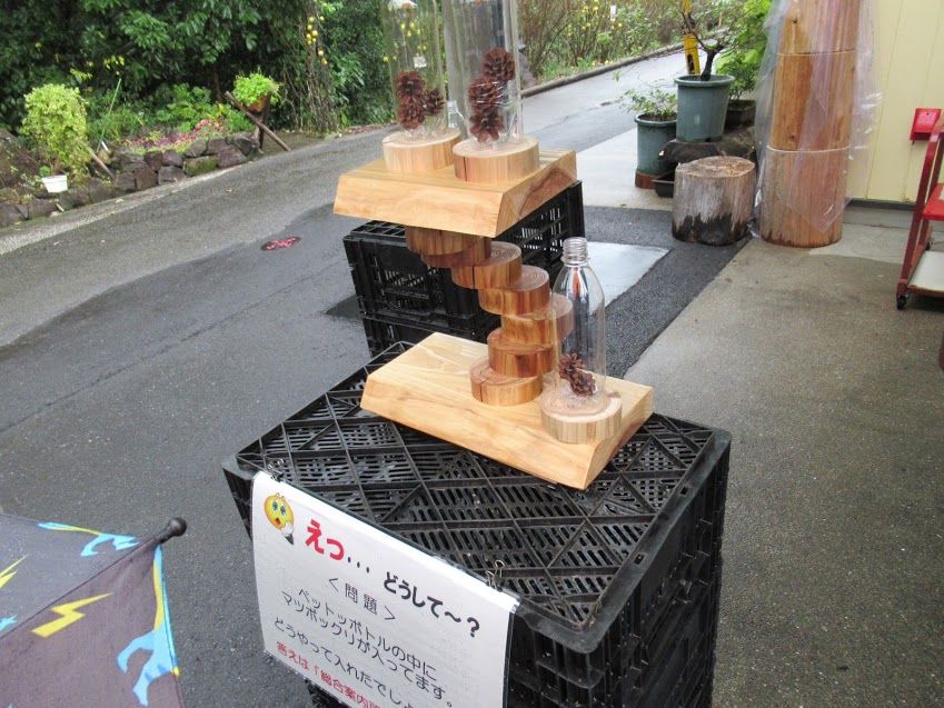 松ぼっくりがペットボトルの中に入っています。手品のようでした。