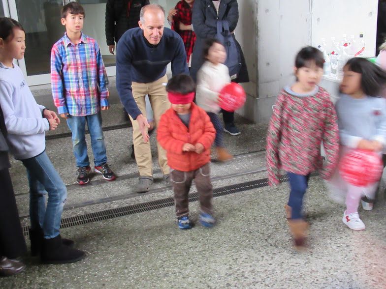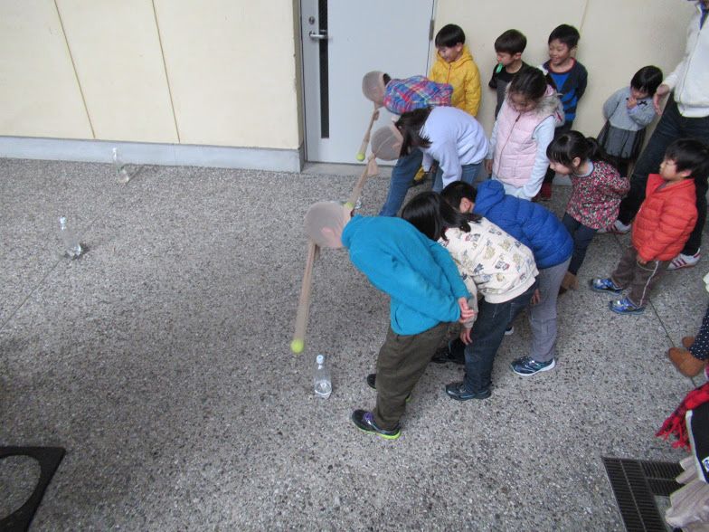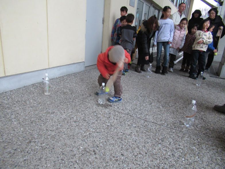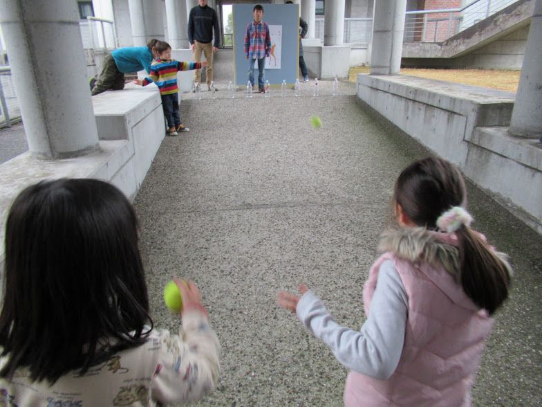 午後から雨が降り出しましたが,廊下で子ども向けのゲームをやりました。