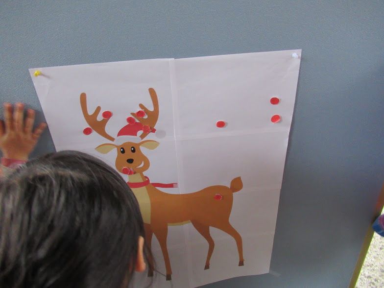 目隠ししながらトナカイに赤い鼻をつけるゲーム。