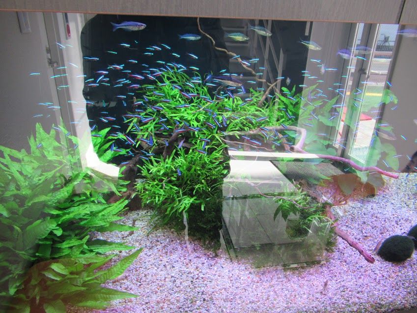 廊下には熱帯魚が泳ぐ水槽があって癒しの空間でした。