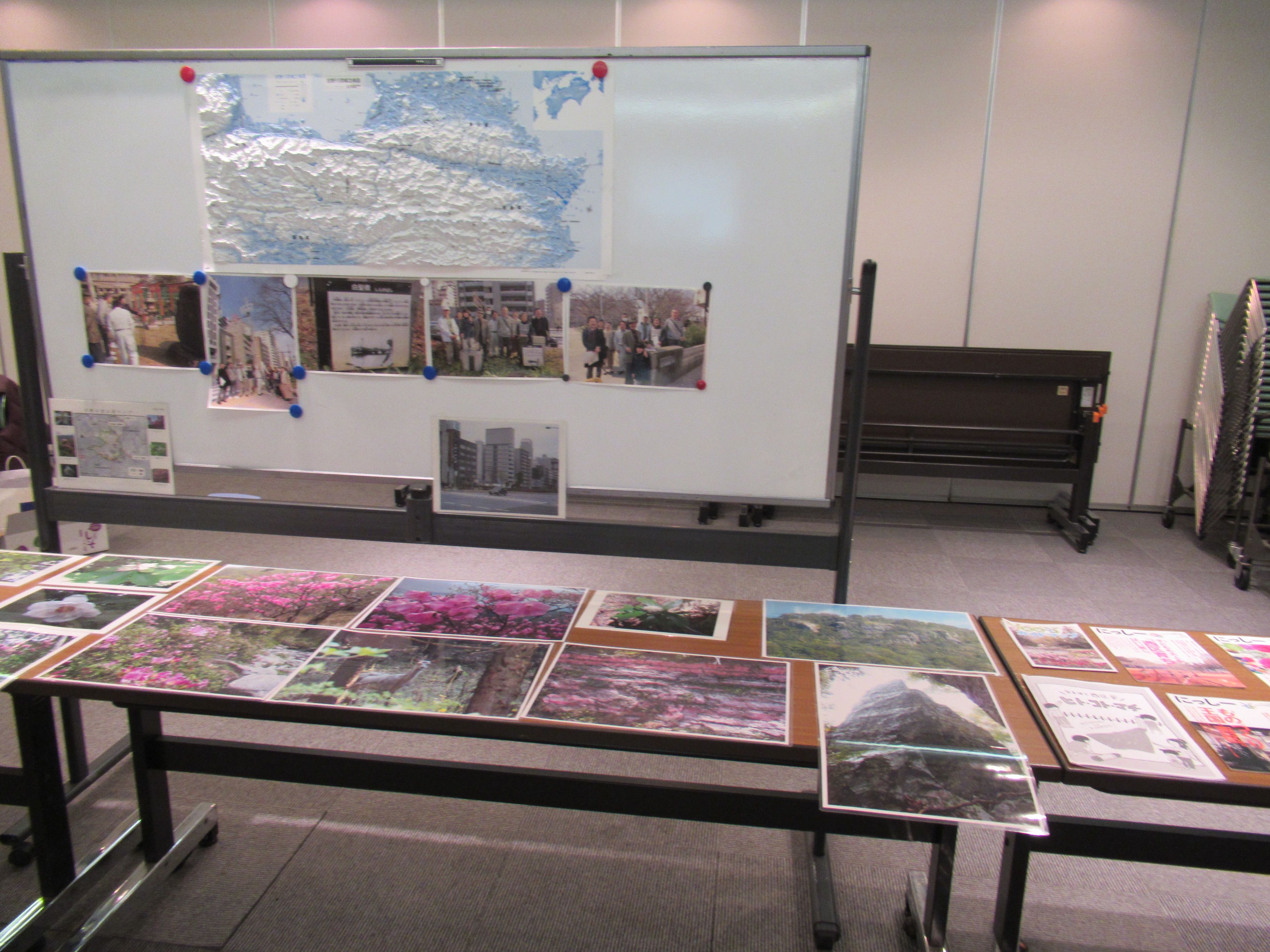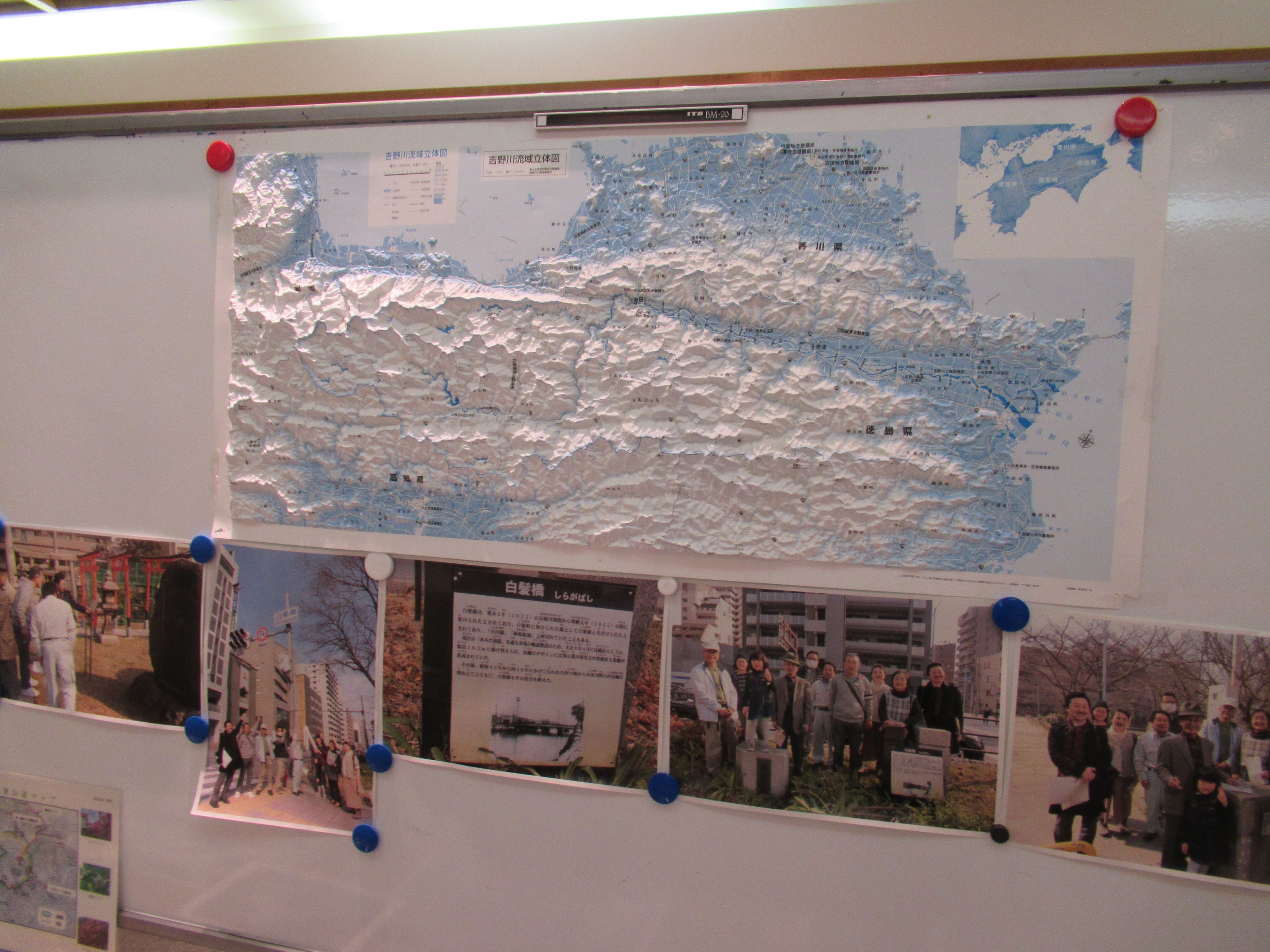 会議室後ろのスペースには吉野川流域の立体地図や白髪山桧の写真などが展示されました。