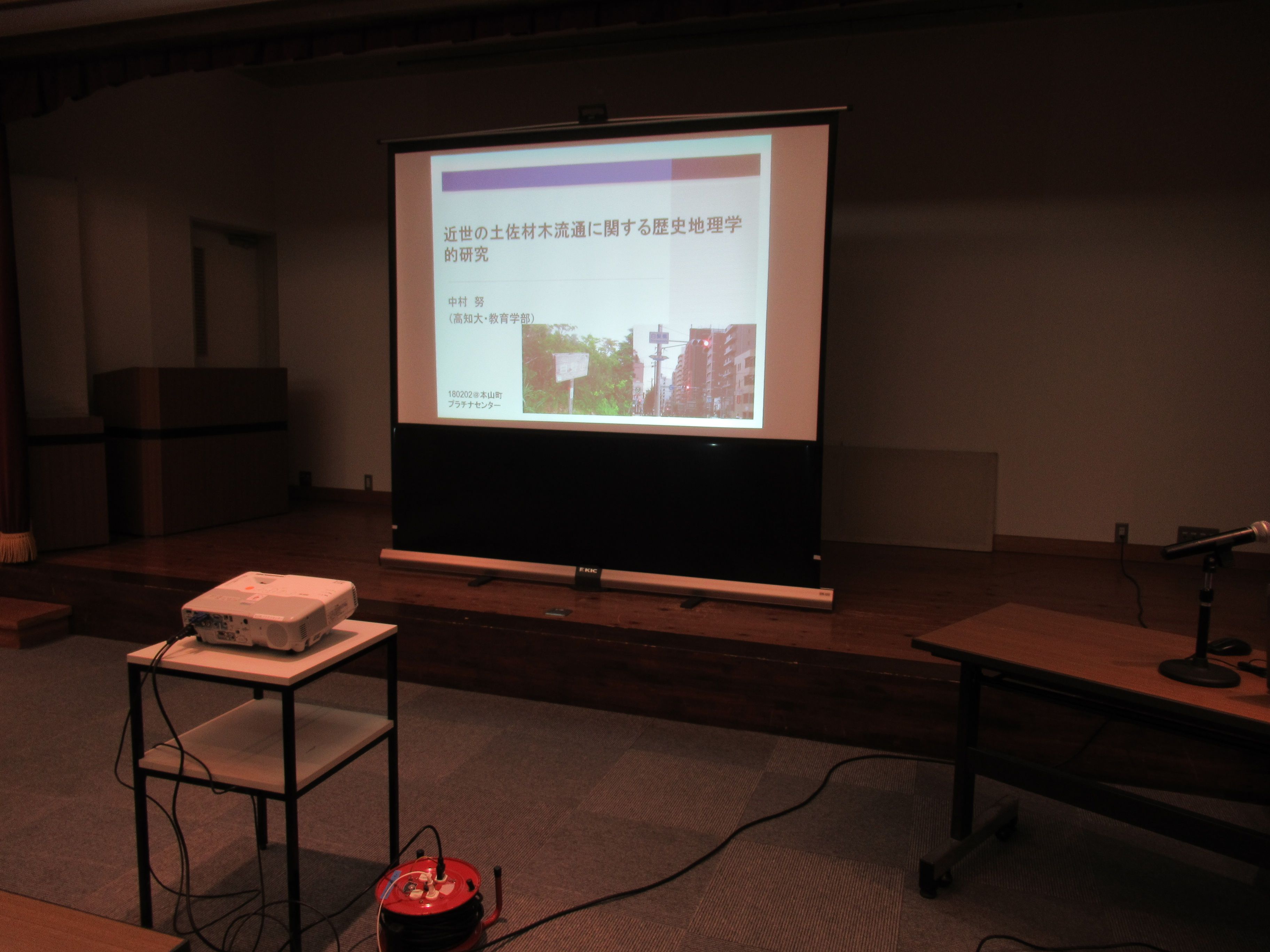 本山町プラチナセンターで地元の方を中心に近世の土佐材木流通のに関する報告会を行いました。