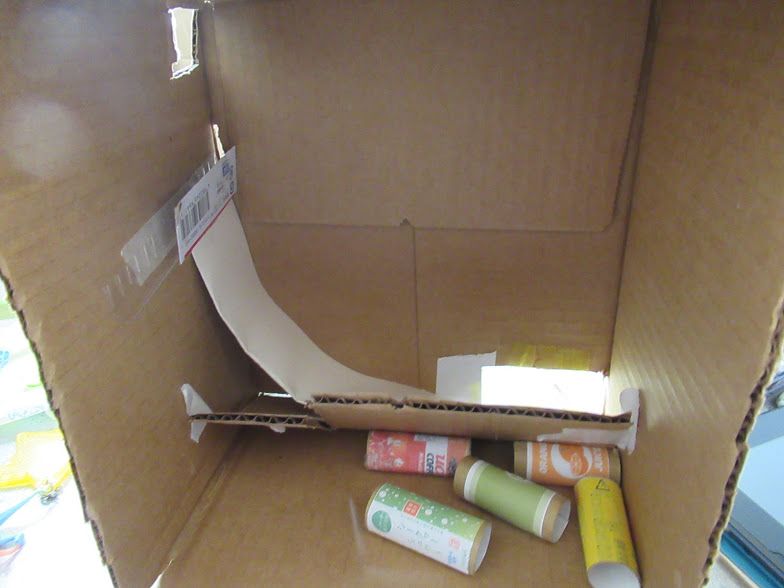 裏は滑り台になっていて,入れたジュースがそのまま出口から出るようにしました。
