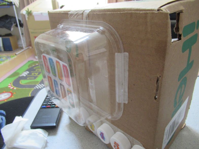 ボタンは数字シールを貼ったペットボトルキャップで。