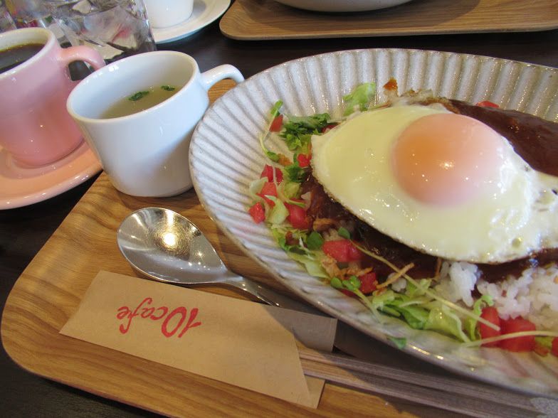 ボリュームのあるハンバーグに目玉焼きが乗っています。
