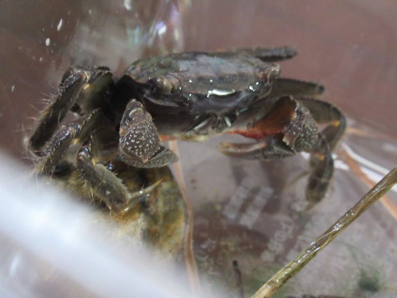 カエルはだいぶ大きくて逃しましたが,カニをゲット。