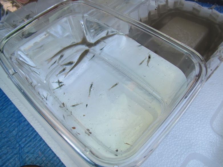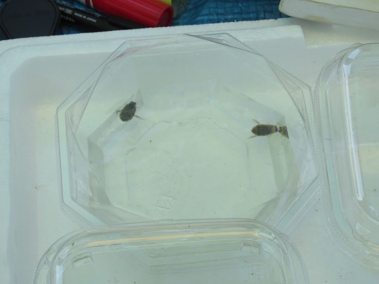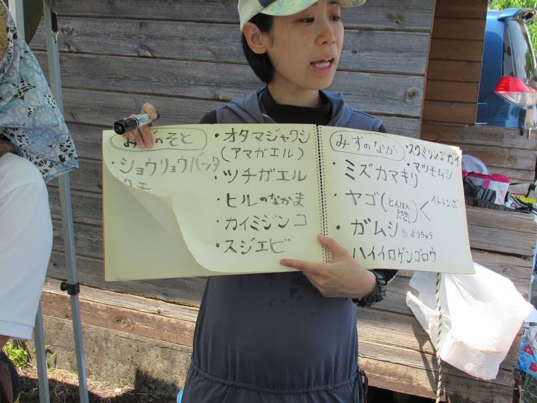 水の中と外で短時間に16種もの生きものが見つかりました。