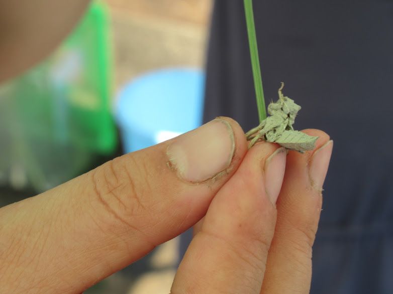 これがヤゴから脱皮したトンボの抜け殻。泥まみれ