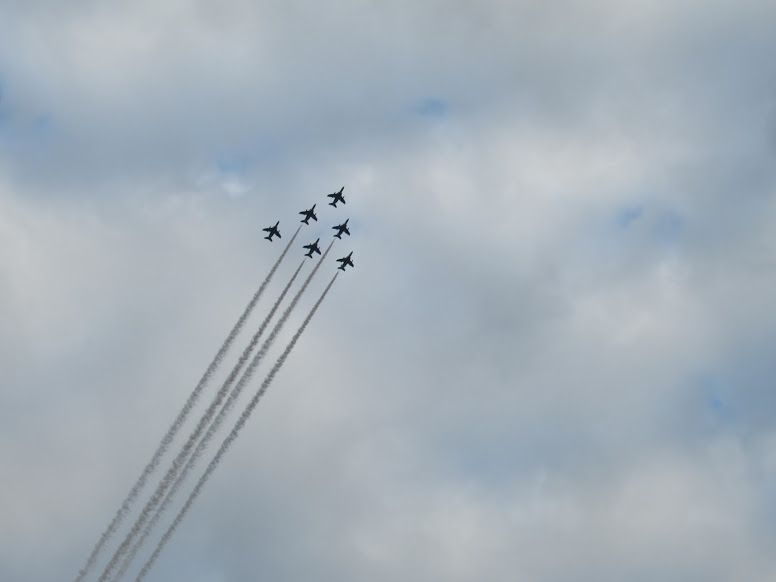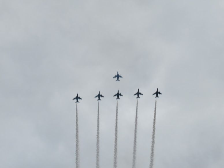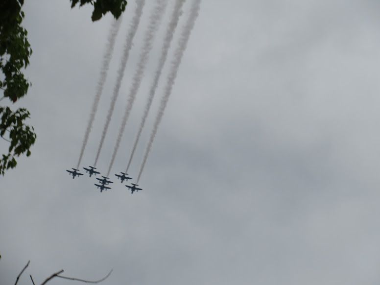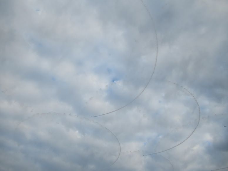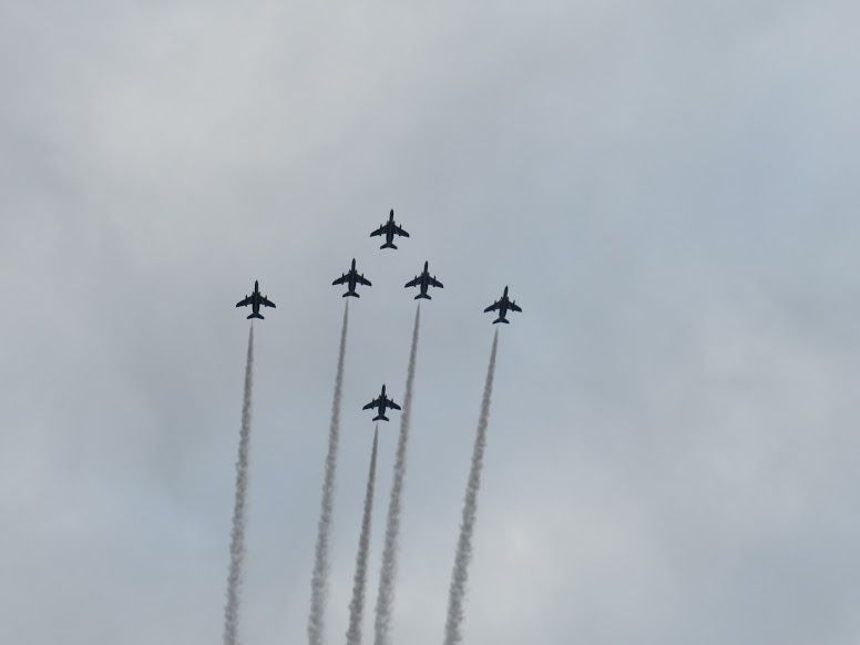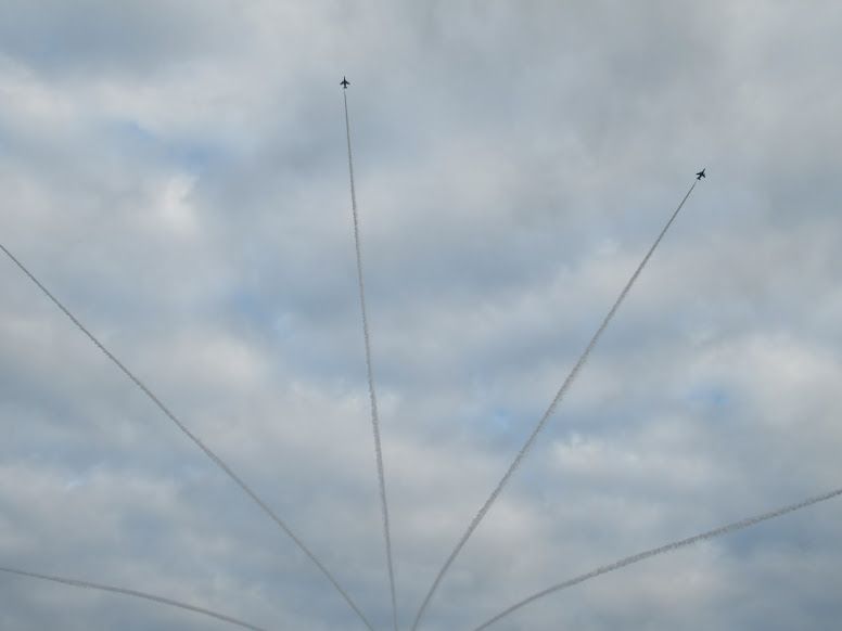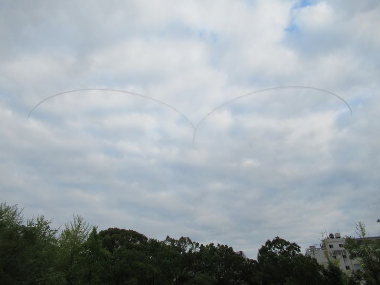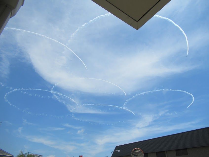 いろんな角度からいろんな隊列で飛行機雲を吐きながら飛んでいました。