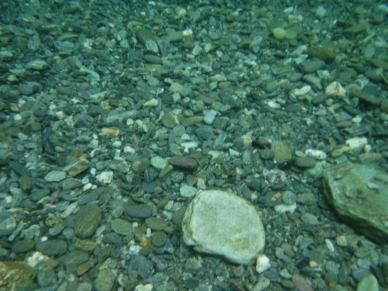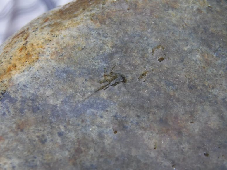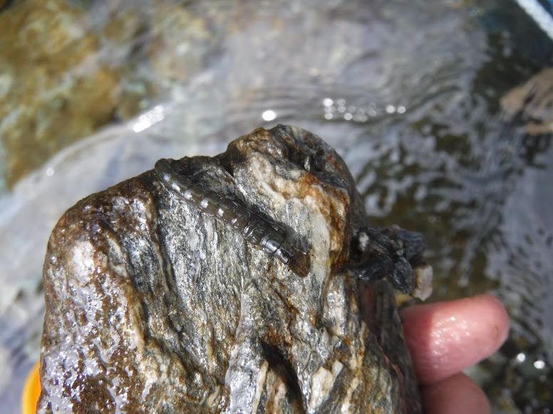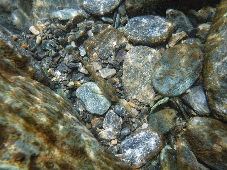 流れが急に変わっているところの石をはがすと見つけやすいとのアドバイスで見てみると簡単に見つかりました。