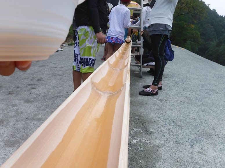 お昼が終わって,竹鉄砲大会とクイズ大会。