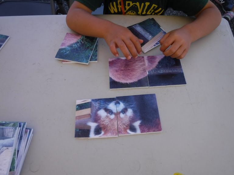 のいち動物公園のブースでパズルを完成させてバッジと景品のためのチケットをゲット