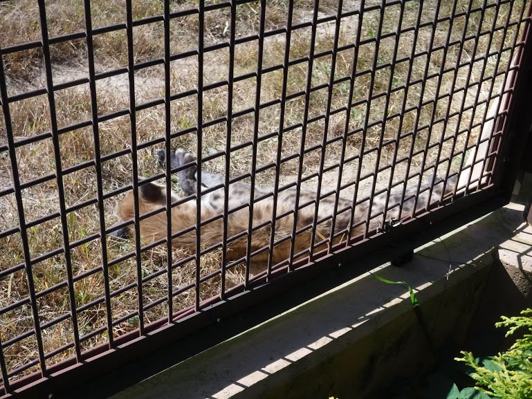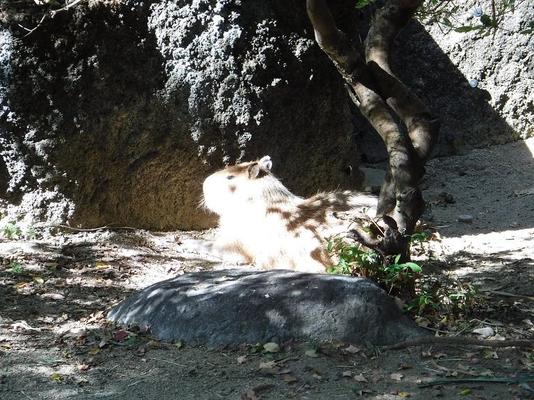サバンナのコーナーでは定位置でハイエナが疲れて寝ていました。